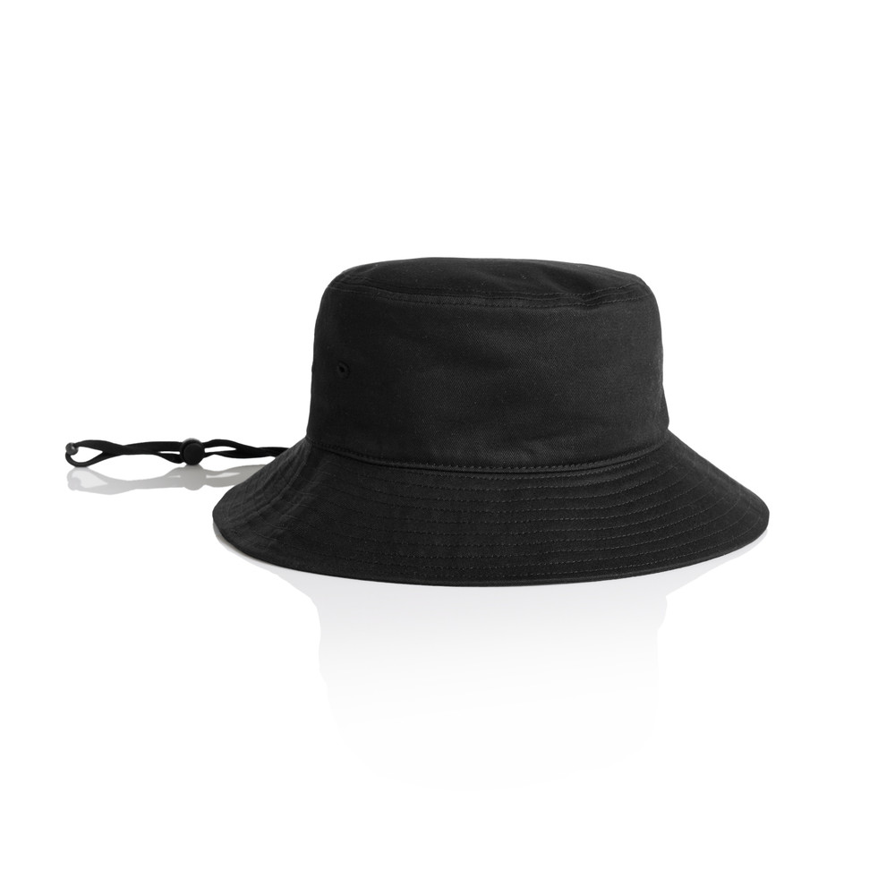 Reinforced large brim with stitching detail, side eyelets, self-fabric chin strap, plastic adjustable toggleOne size fits all